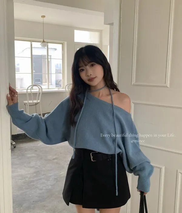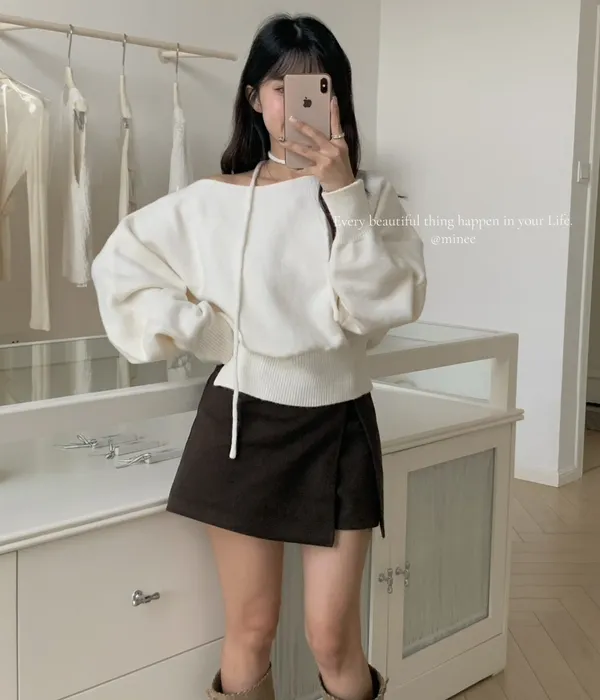 雙十一連線-斜肩繞繩毛衣