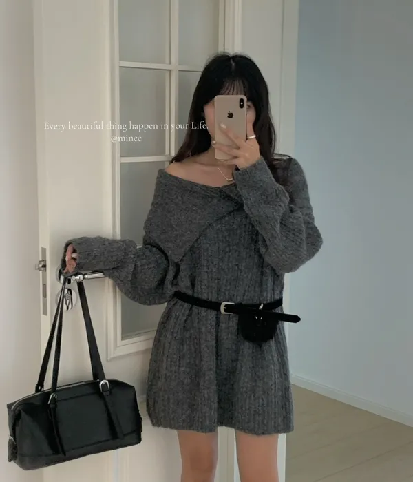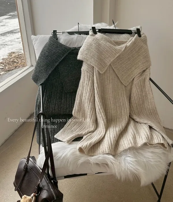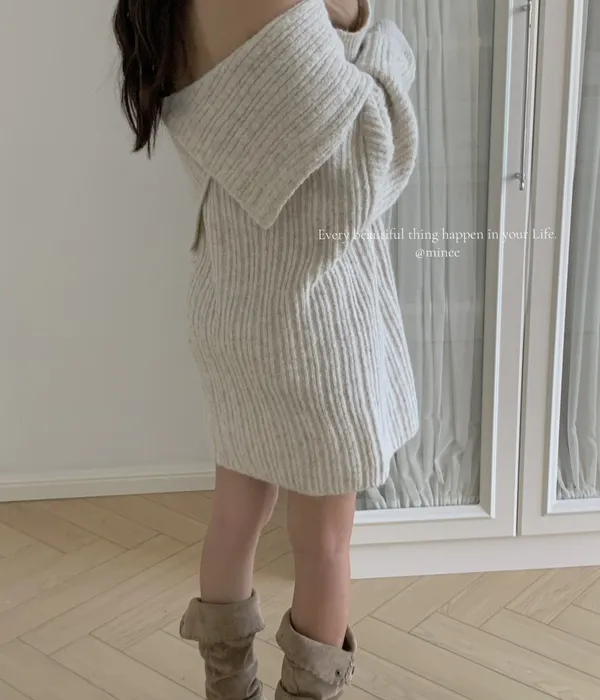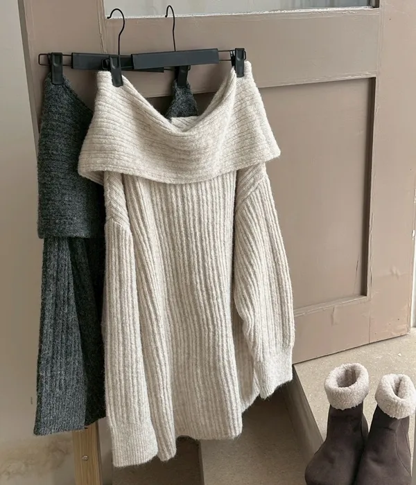 雙十一連線-冬日慵懶一字領寬版毛衣