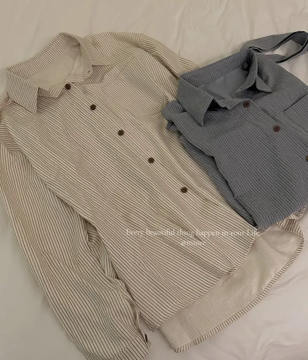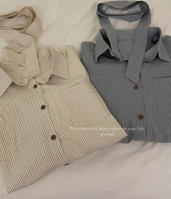雙十一連線-附飄帶直條紋襯衫