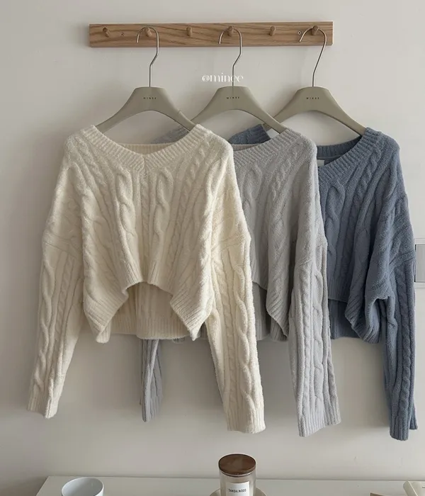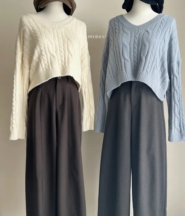 V領麻花針織上衣