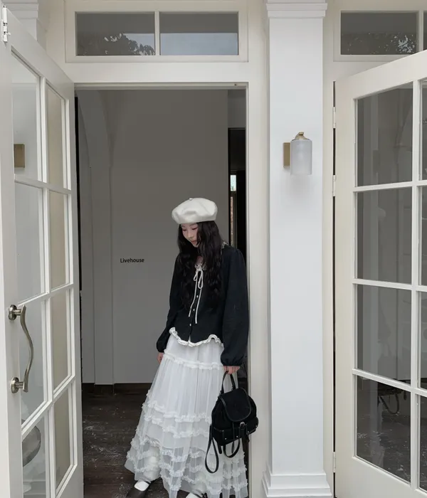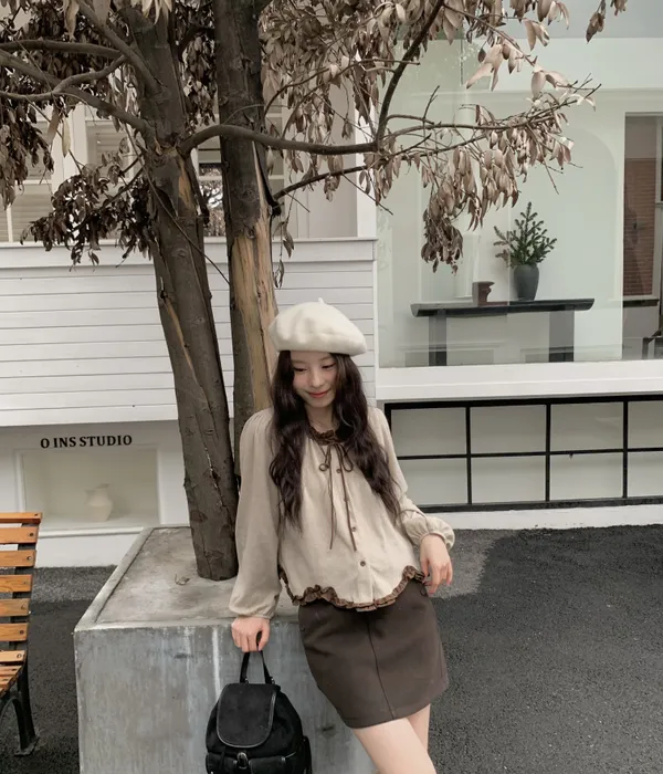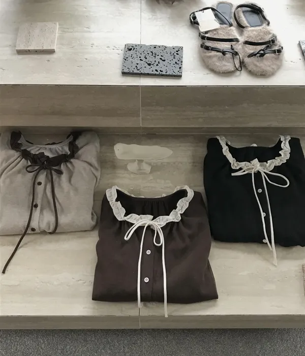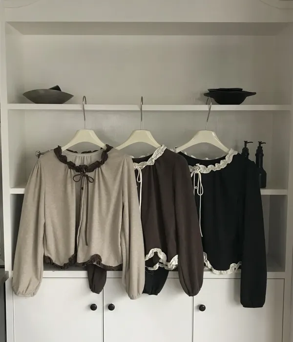 十二月廣州連線-浪花滾邊蝴蝶結領上衣