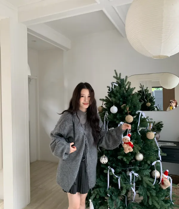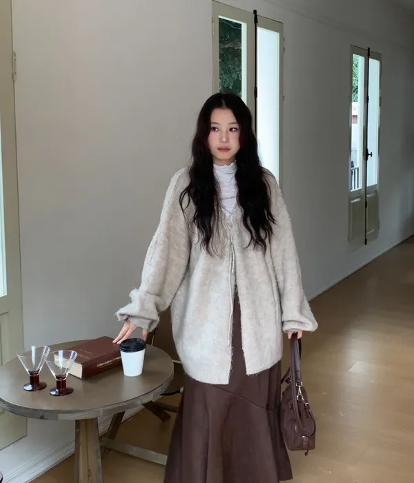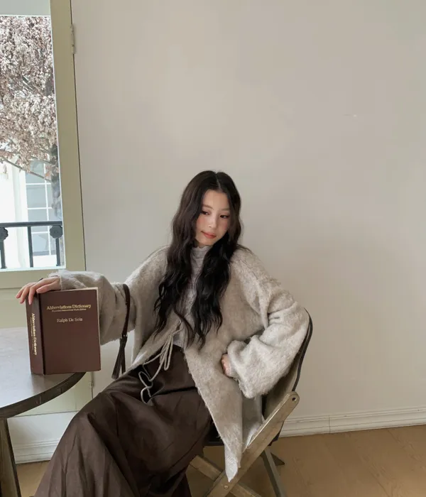 十二月廣州連線-絨毛綁繩長版罩衫