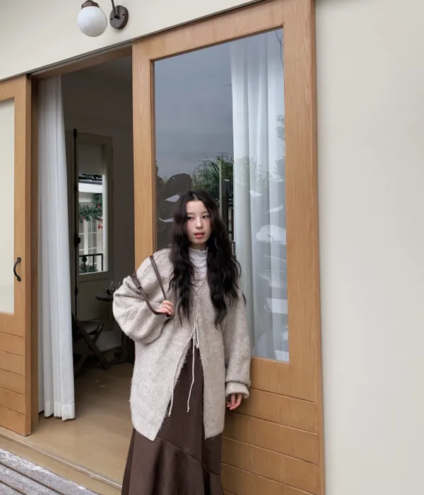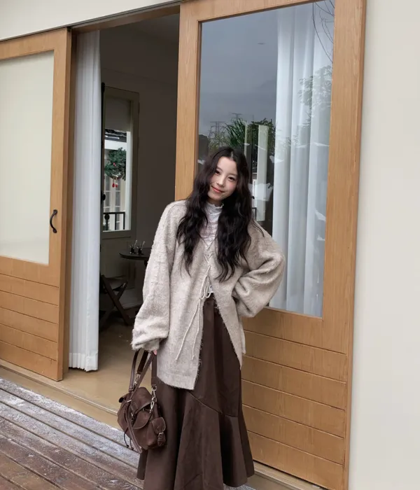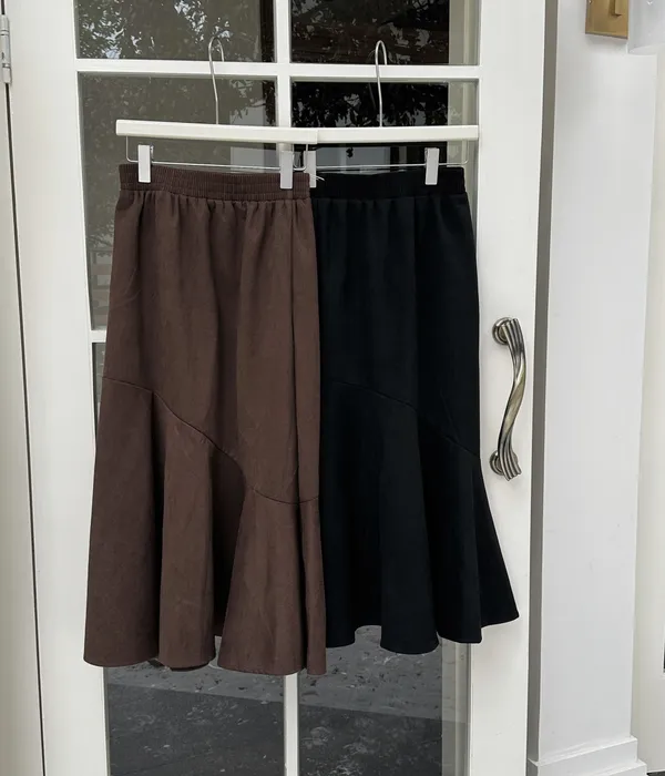 十二月廣州連線-斜切半魚尾麂皮長裙
