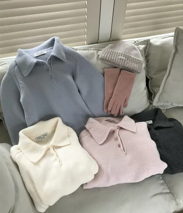 十二月廣州連線-Polo領可愛色針織毛衣