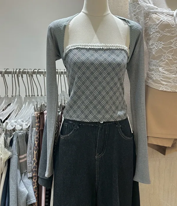 10月廣州連線-小格紋坎肩外套Set